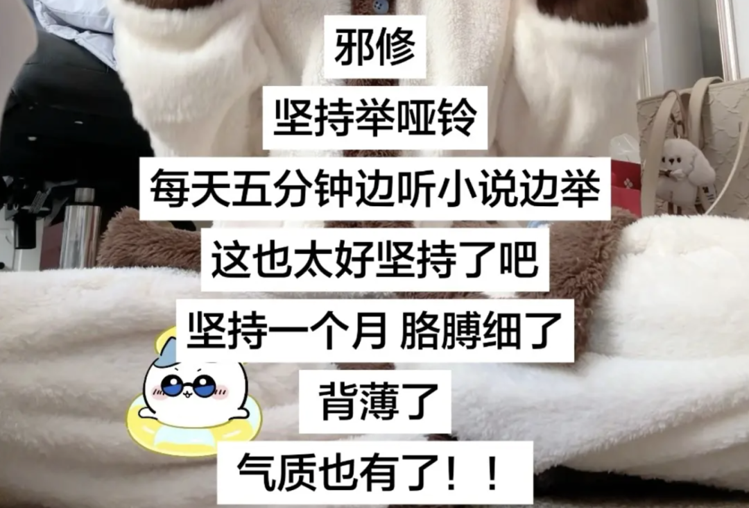 还有网友一边听爽文,一边举哑铃,非常好坚持: